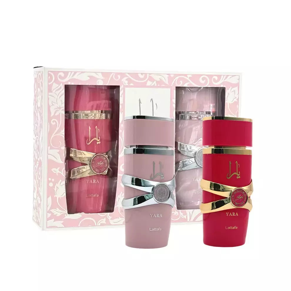 El set de fragancias Yara es la combinación perfecta para quienes desean explorar la máxima expresión de la feminidad, la dulzura y el lujo en el mundo de la perfumería árabe. Este kit de edición limitada te ofrece dos experiencias olfativas únicas que se complementan a la perfección: el icónico Yara Clásico, una fragancia de ensueño, y su contraparte más dulce y juguetona, Yara Candy. Juntos, crean un dúo dinámico para cualquier ocasión, desde un día casual hasta una noche de celebración.
